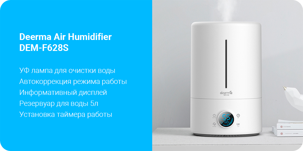 Компания Deerma особенно заботится о чистоте, глубоком целительном воздействии на кожу. Deerma UV Ultrasonic Humidifier 5л – один из лучших и безопасных увлажнителей. Основная задача увлажнителя воздуха – нормализация показателей влажности, сохранение здоровья кожи и слизистых, предотвращение простудных заболеваний и аллергий.