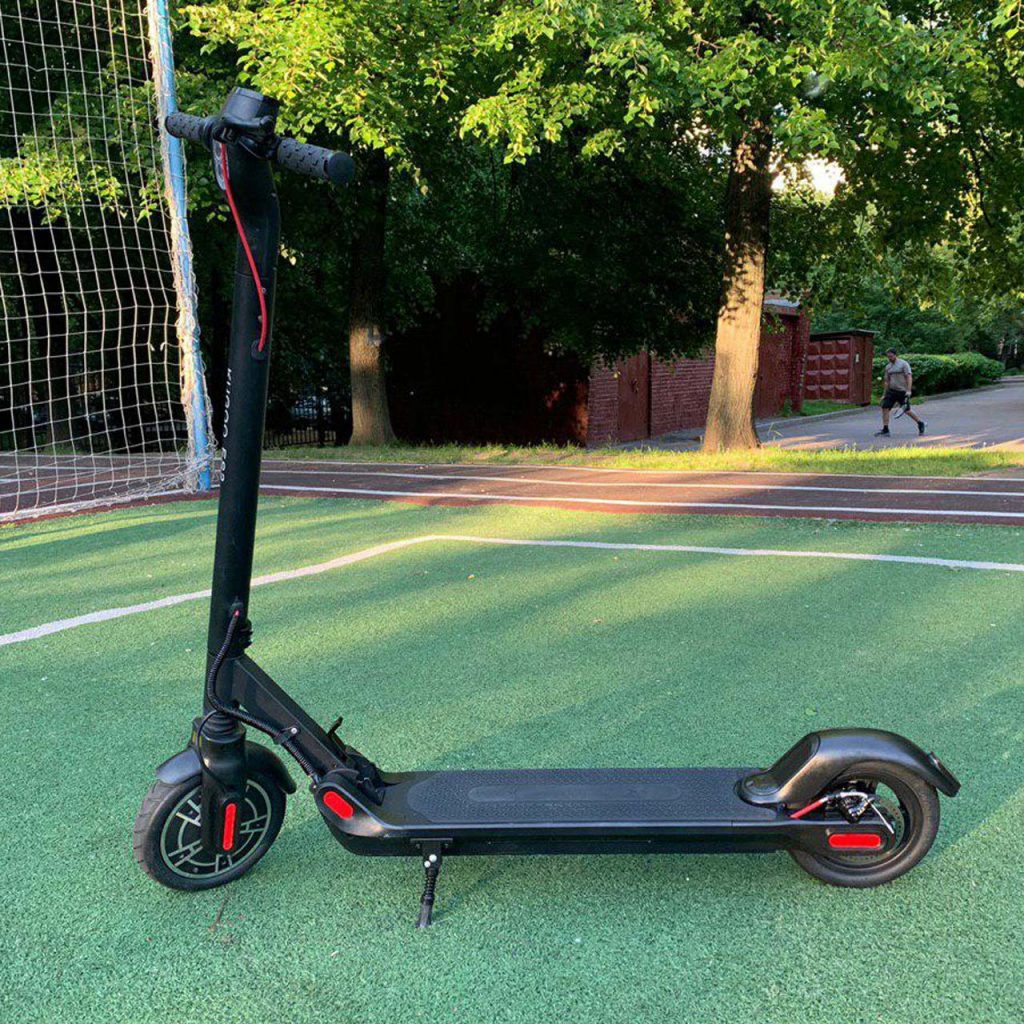 Герметичный корпус надёжно защищает аккумуляторную батарею от влаги и пыли, продлевая срок службы девайса. Необходимо также отметить достаточно высокий клиренс и улучшенную амортизацию и подвеску. Это позволяет без труда преодолевать дорожные неровности, брусчатку, грунтовую дорогу или даже газон. В ночное время суток вам не придется, щурясь вглядываться в дорогу, ведь самокат оснащен отличной системой подсветки, направленной слегка в землю, чтобы не слепить встречный транспорт.