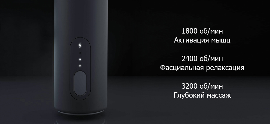 3 уровня интенсивности массажа можно регулировать в диапазоне от 1800 до 3200 оборотов в минуту.